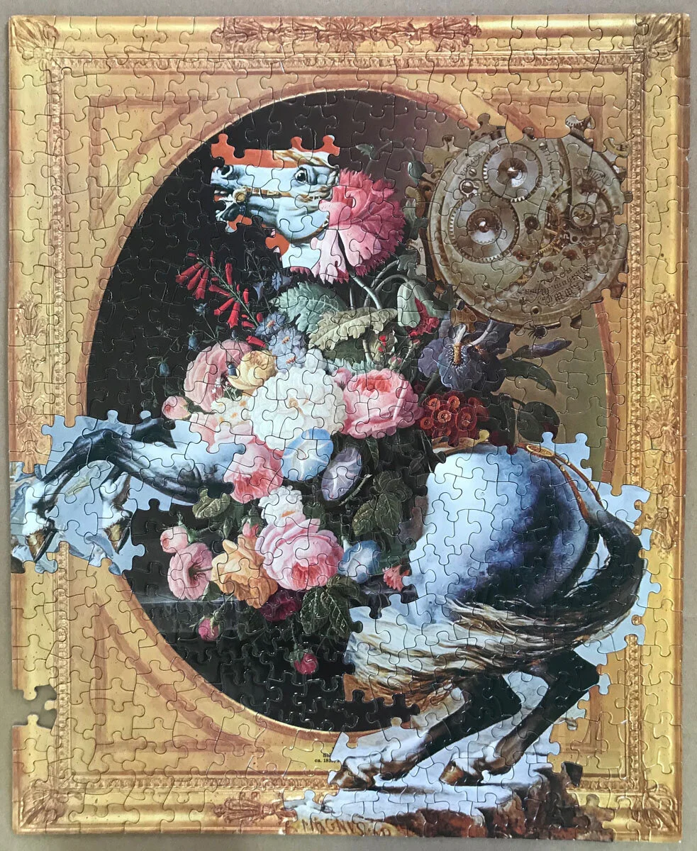 Parrot Burger Party, B-Side, jigsaw puzzle collage, vintage jigsaw puzzles